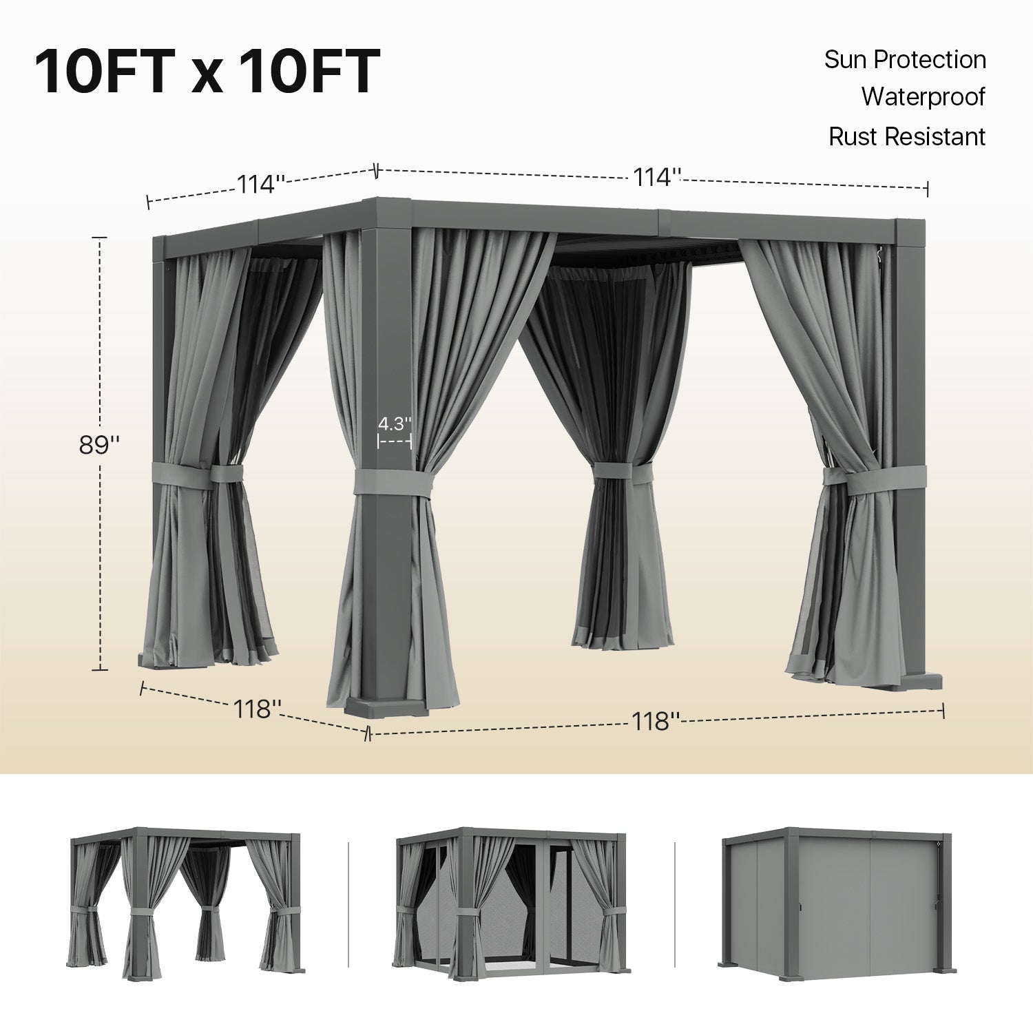 - Curtains & Netting Included: Our pergola with louvers comes equipped with a double-track system and double-sided zipper for effortless sliding. The netting not only ensures excellent ventilation and unobstructed views but also maintains privacy, creating a secure and cozy environment for your family and children, while also offering warmth when needed.