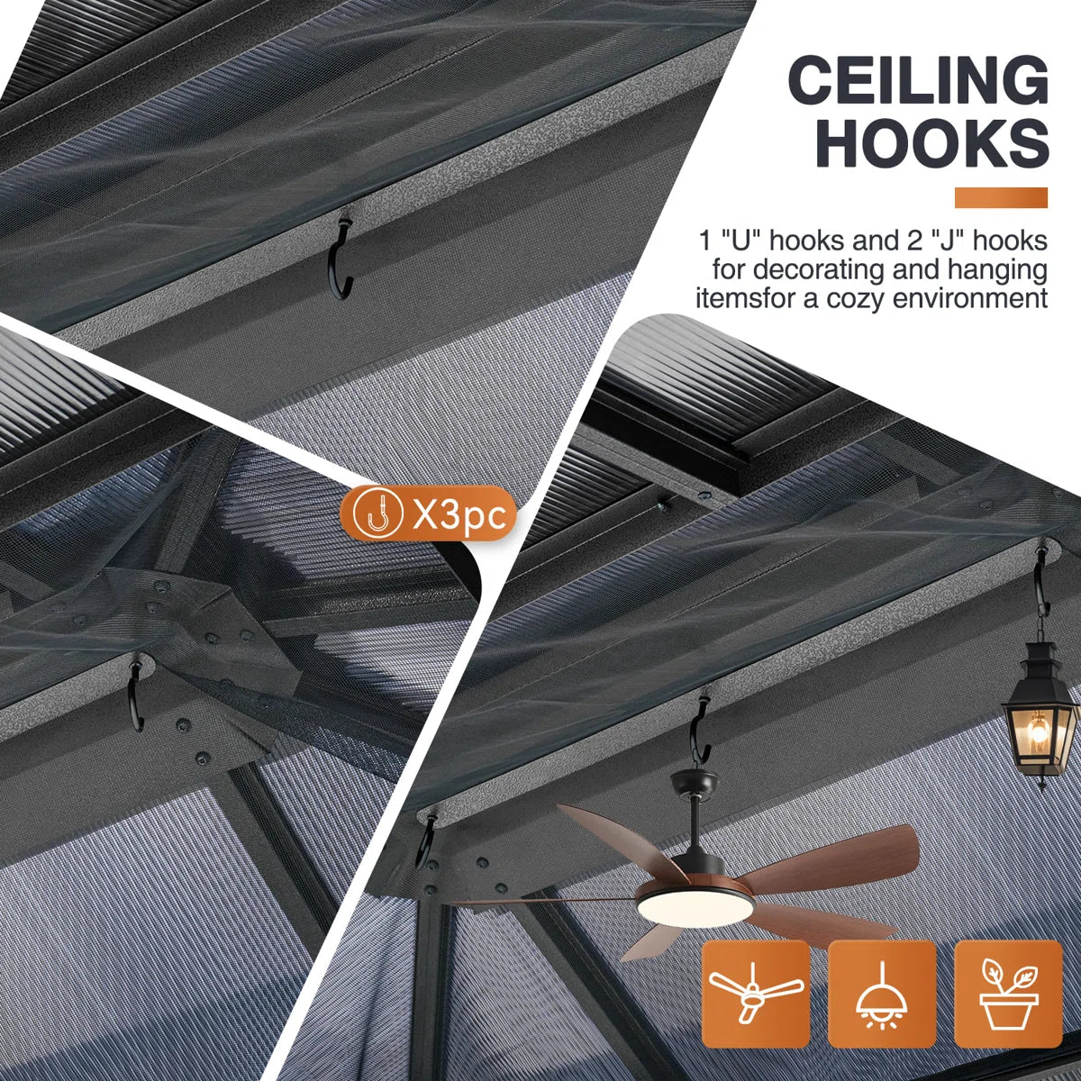 - Enhance stability and durability with our outdoor gazebo. The polycarbonate dual-layer roof boosts durability, ensuring resilience against winds, rain, and elements. Improve airflow and ventilation while protecting from harmful UV rays. Upgrade your outdoor space.