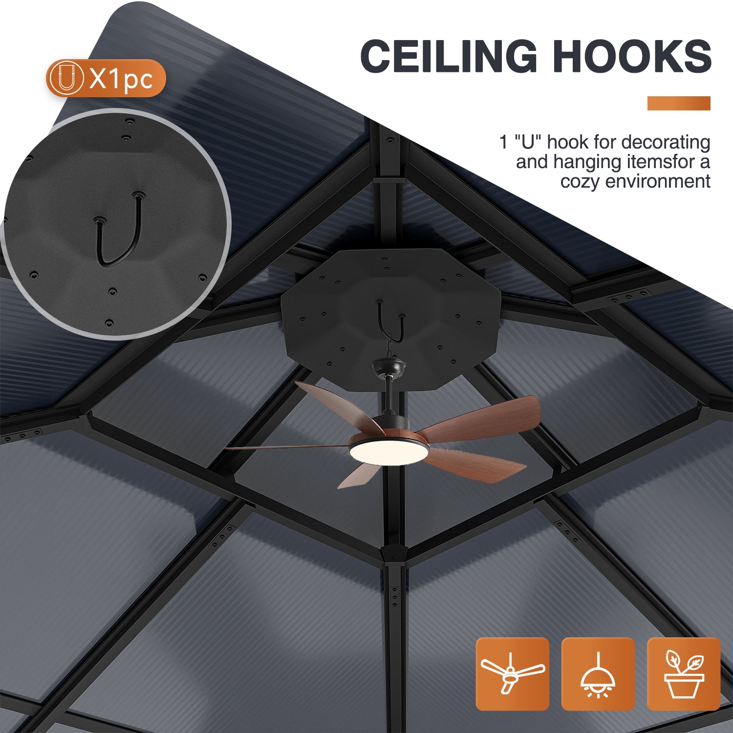 - Double Top Design: Enhance stability and durability with our outdoor Gazebo. The polycarbonate dual-layer roof boosts durability, ensuring resilience against winds, rain, and elements. Improve airflow and ventilation while protecting from harmful UV rays. Upgrade your outdoor space.