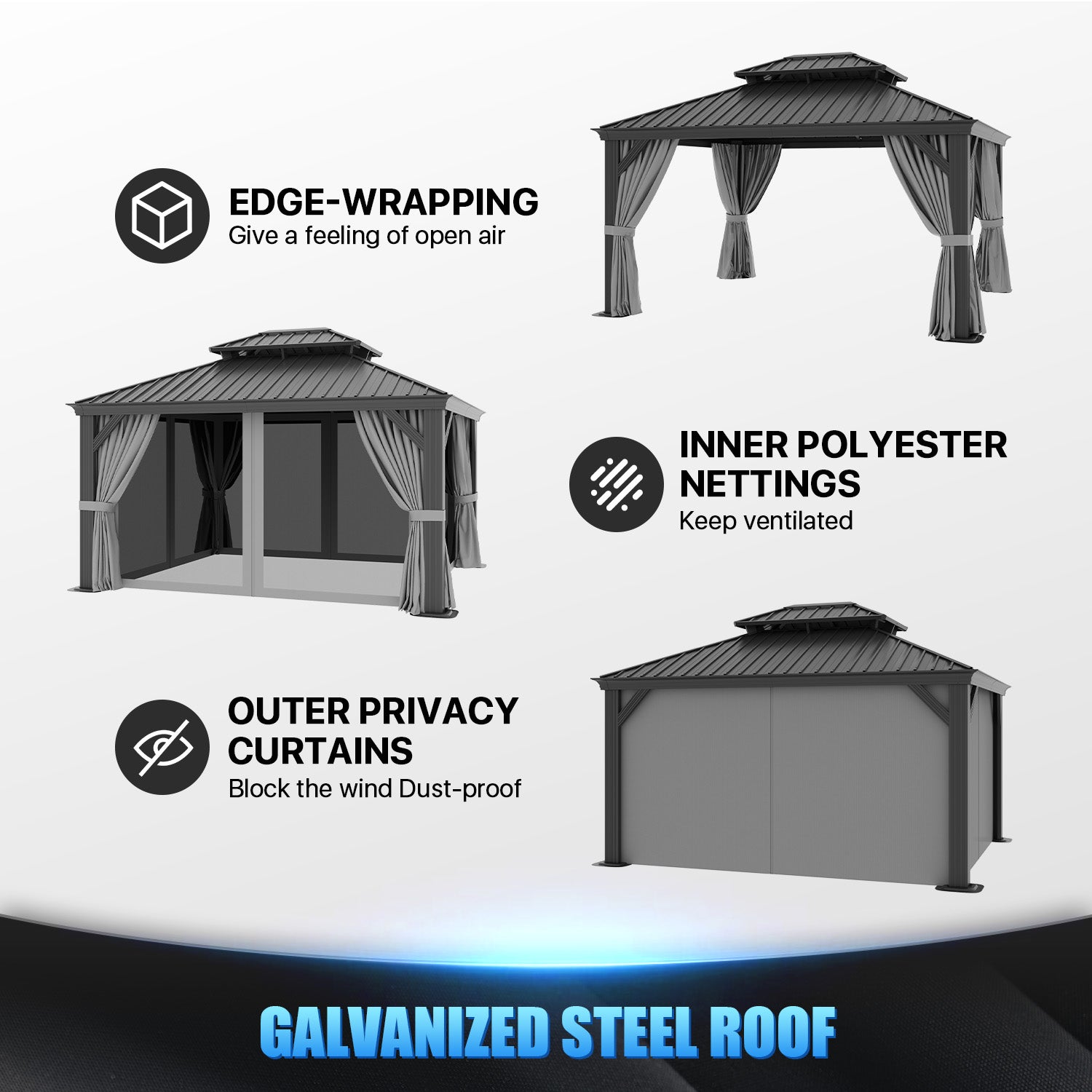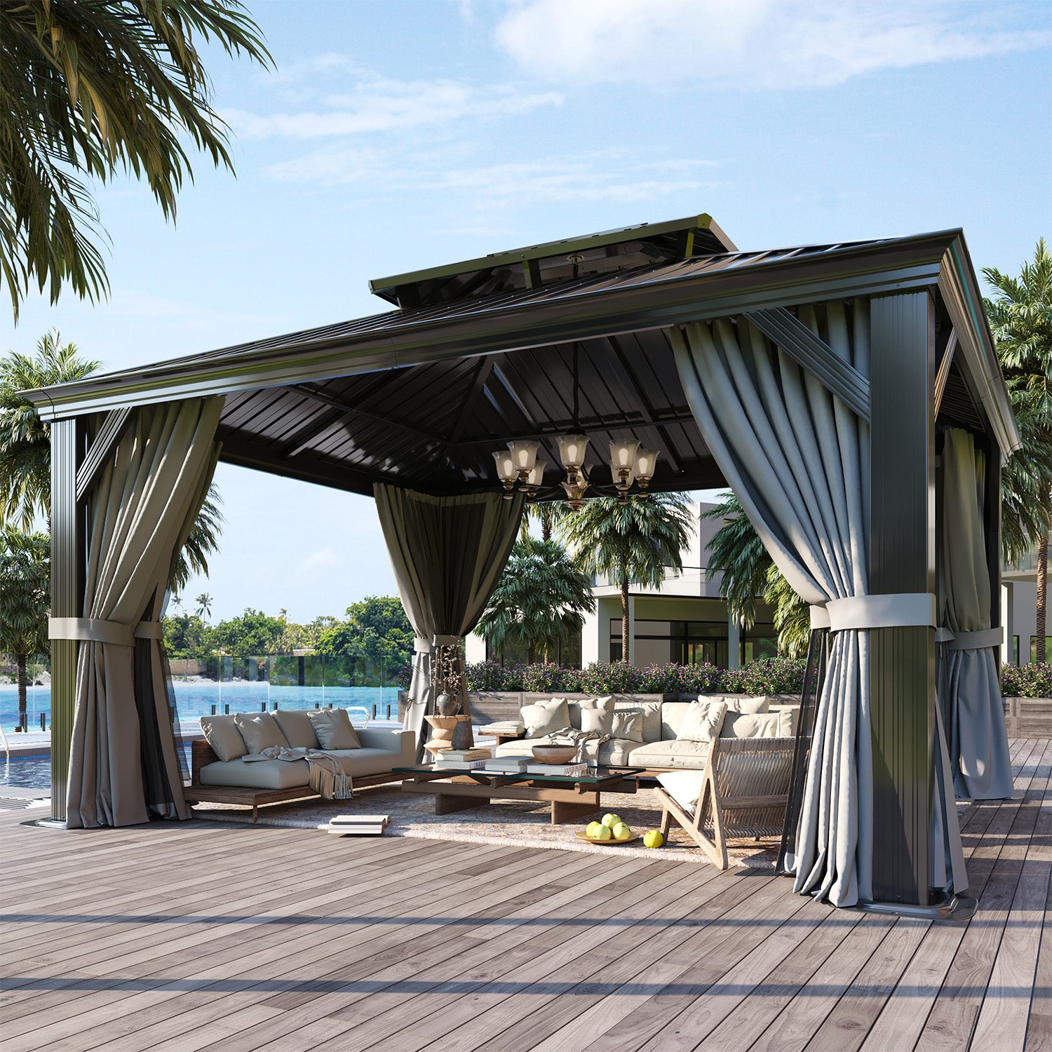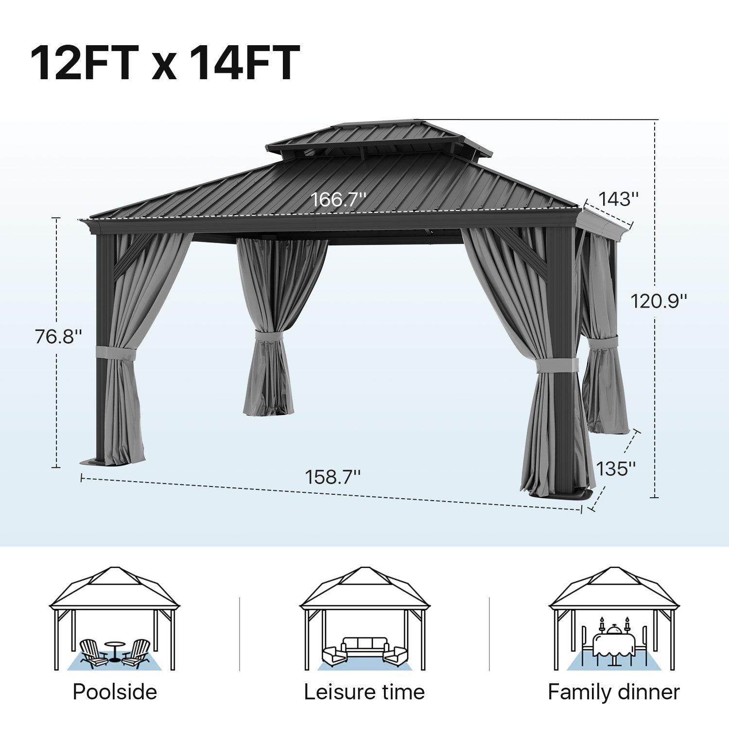 14 Ft. W X 12 Ft. D Metal With Water Guide Roof, 4.7inch Aluminum Post Patio Gazebo