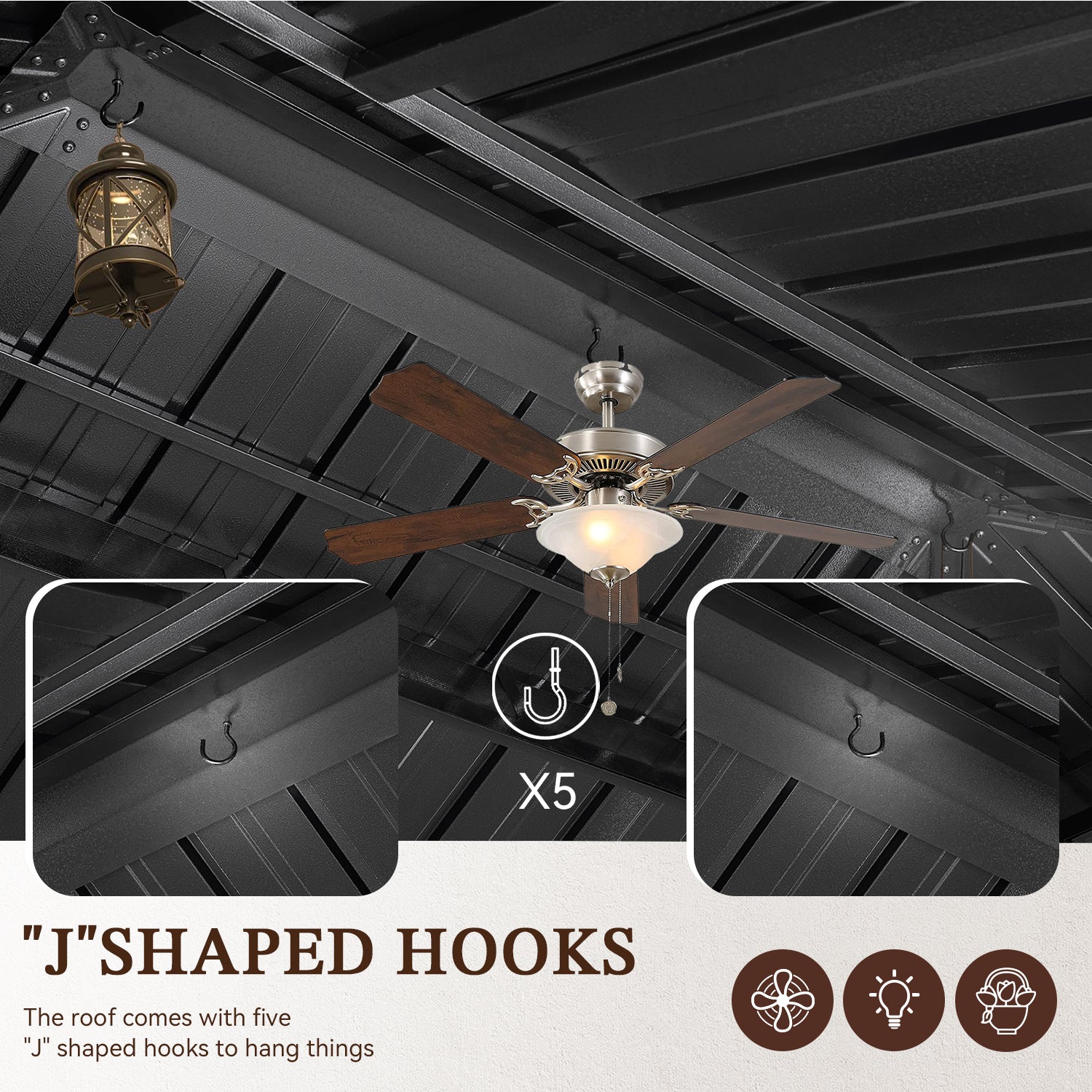 - Double Top Design: Double top design increases the stability of the gazebo and also provides better airflow and ventilation. The galvanized steel roof can withstand heavy snow, rain, or wind weather. The design enhances the overall aesthetic appeal of the gazebo.