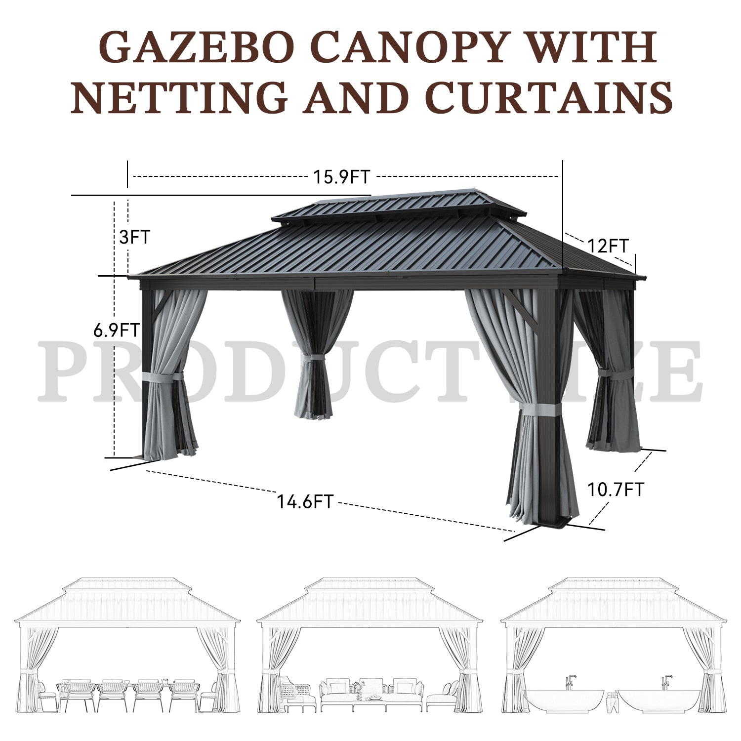 16 Ft. W X 12 Ft. D Metal Patio Gazebo