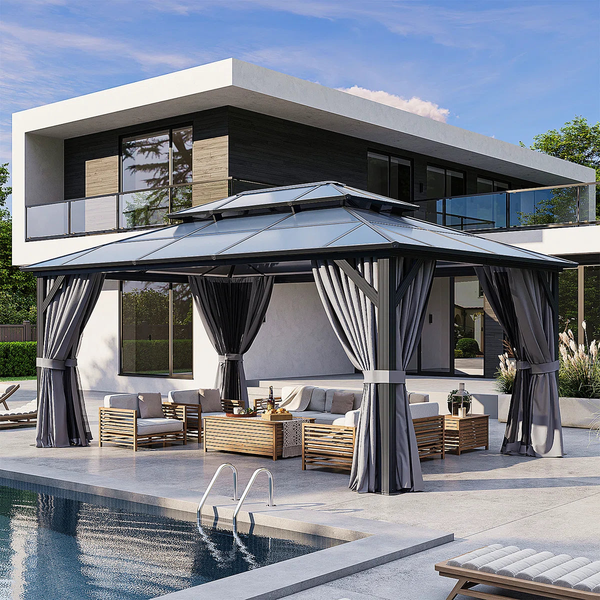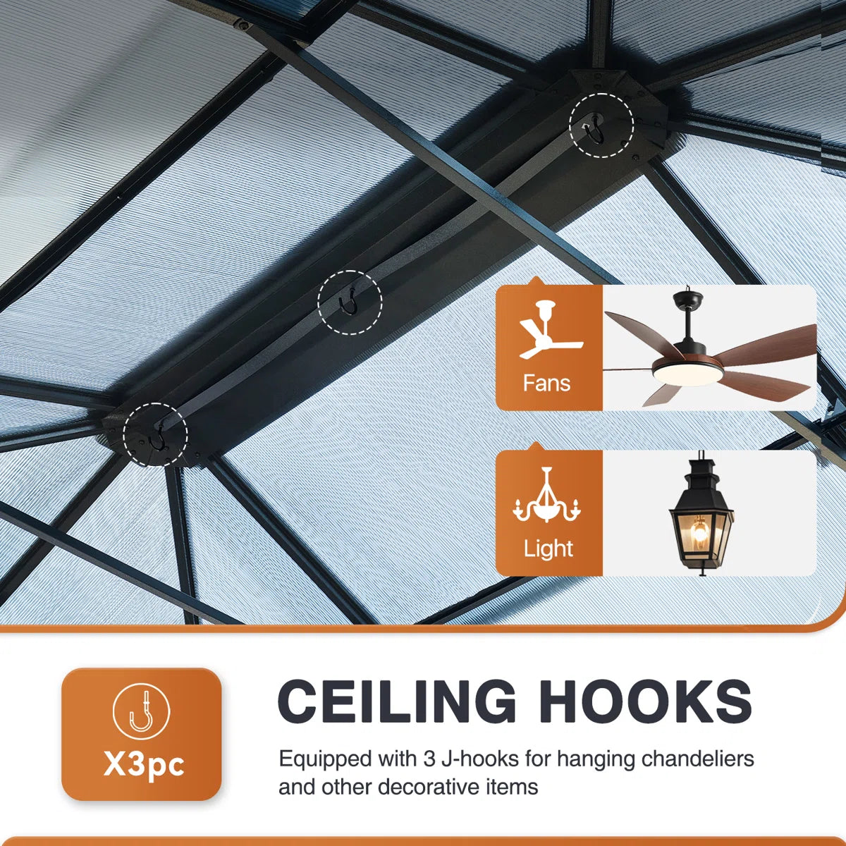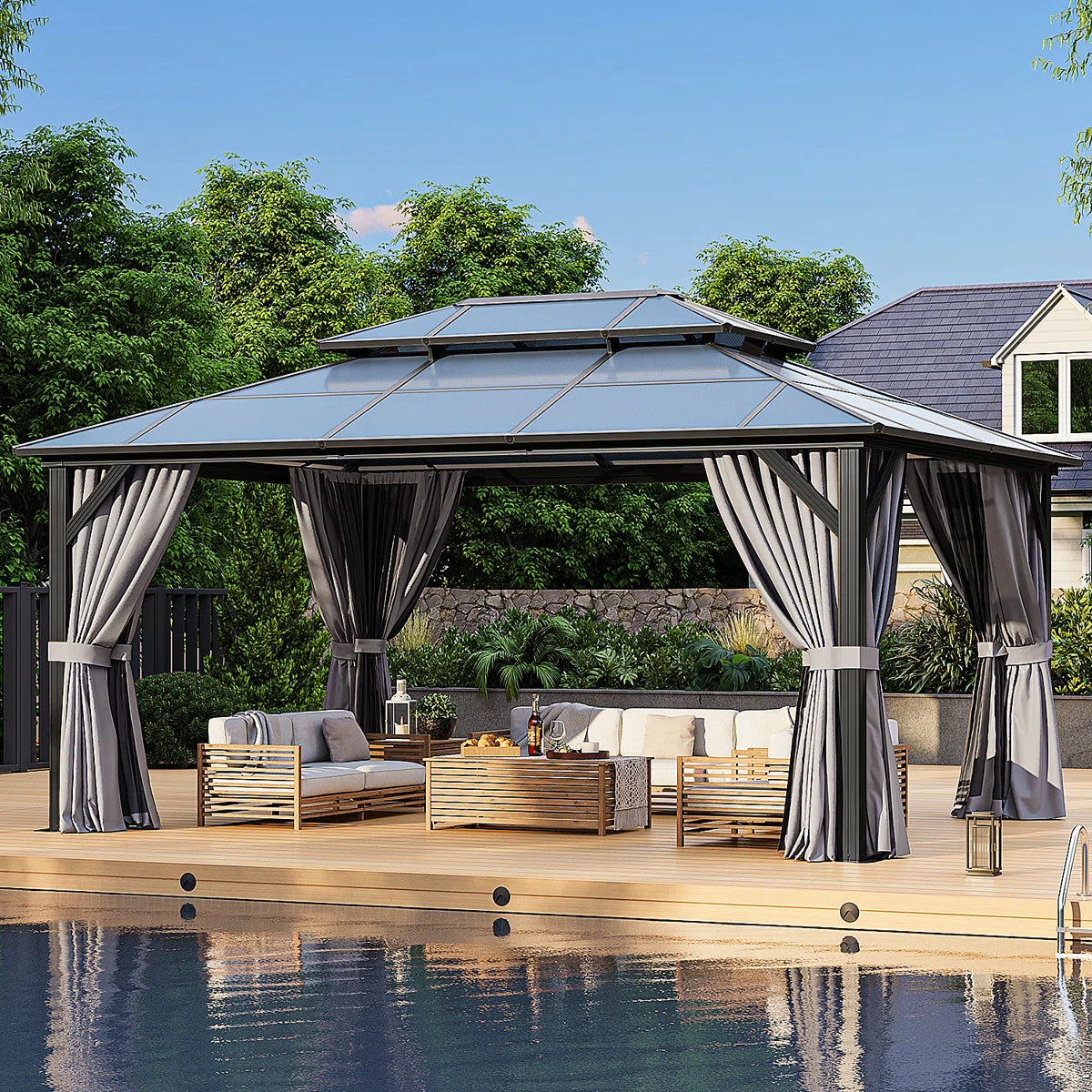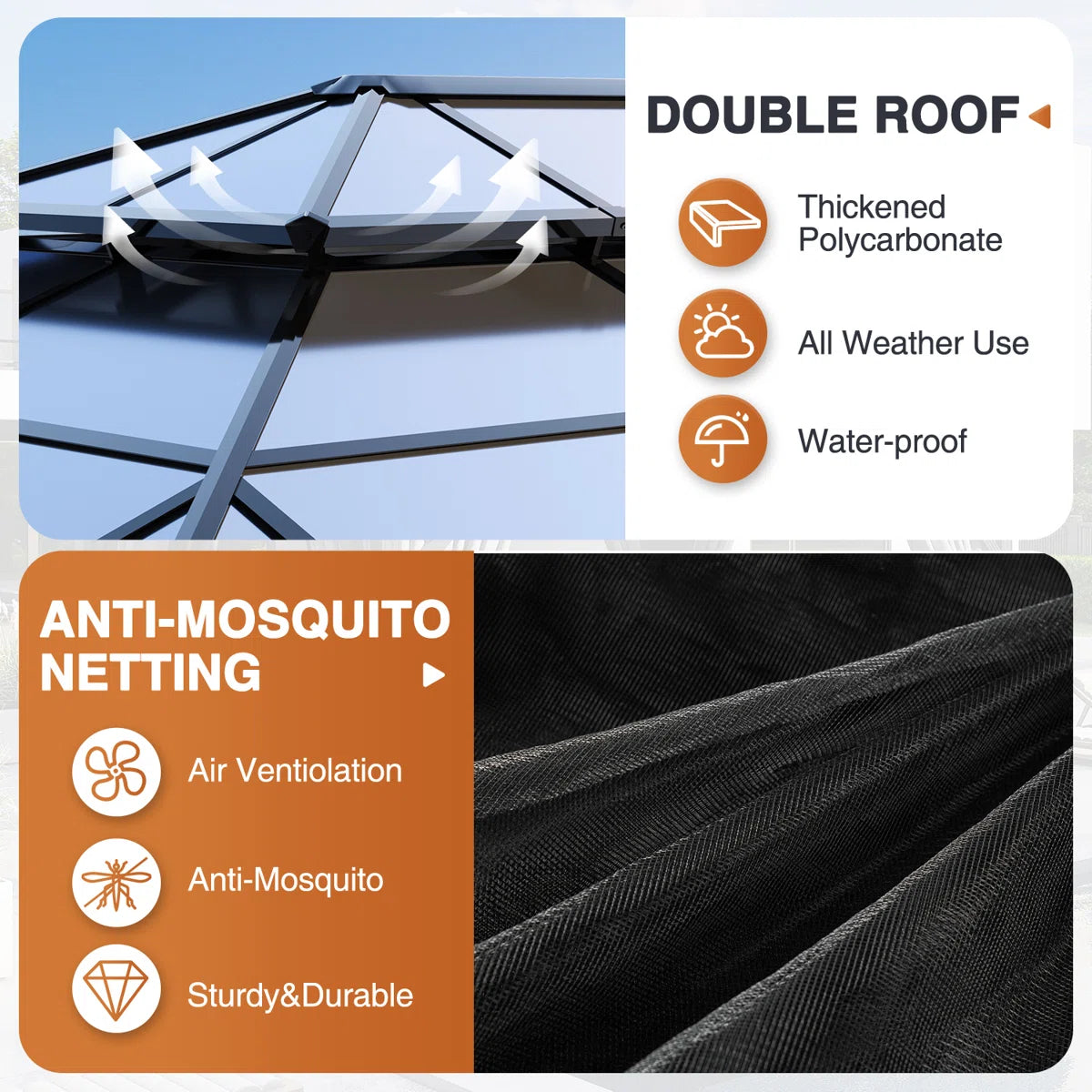 - Double Top Design: Enhance stability and durability with our outdoor Gazebo. The polycarbonate dual-layer roof boosts durability, ensuring resilience against winds, rain, and elements. Improve airflow and ventilation while protecting from harmful UV rays.