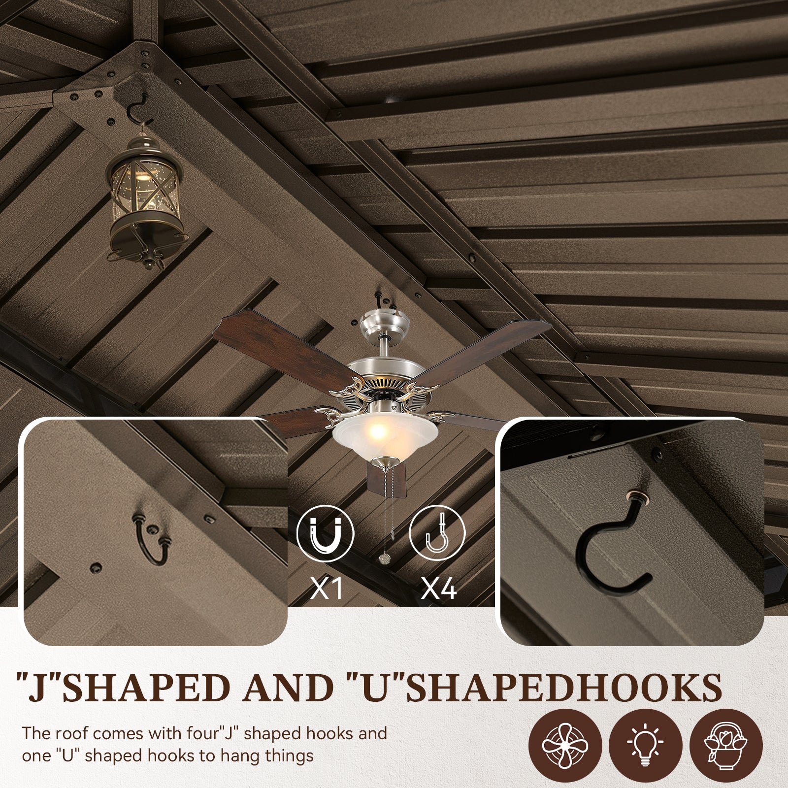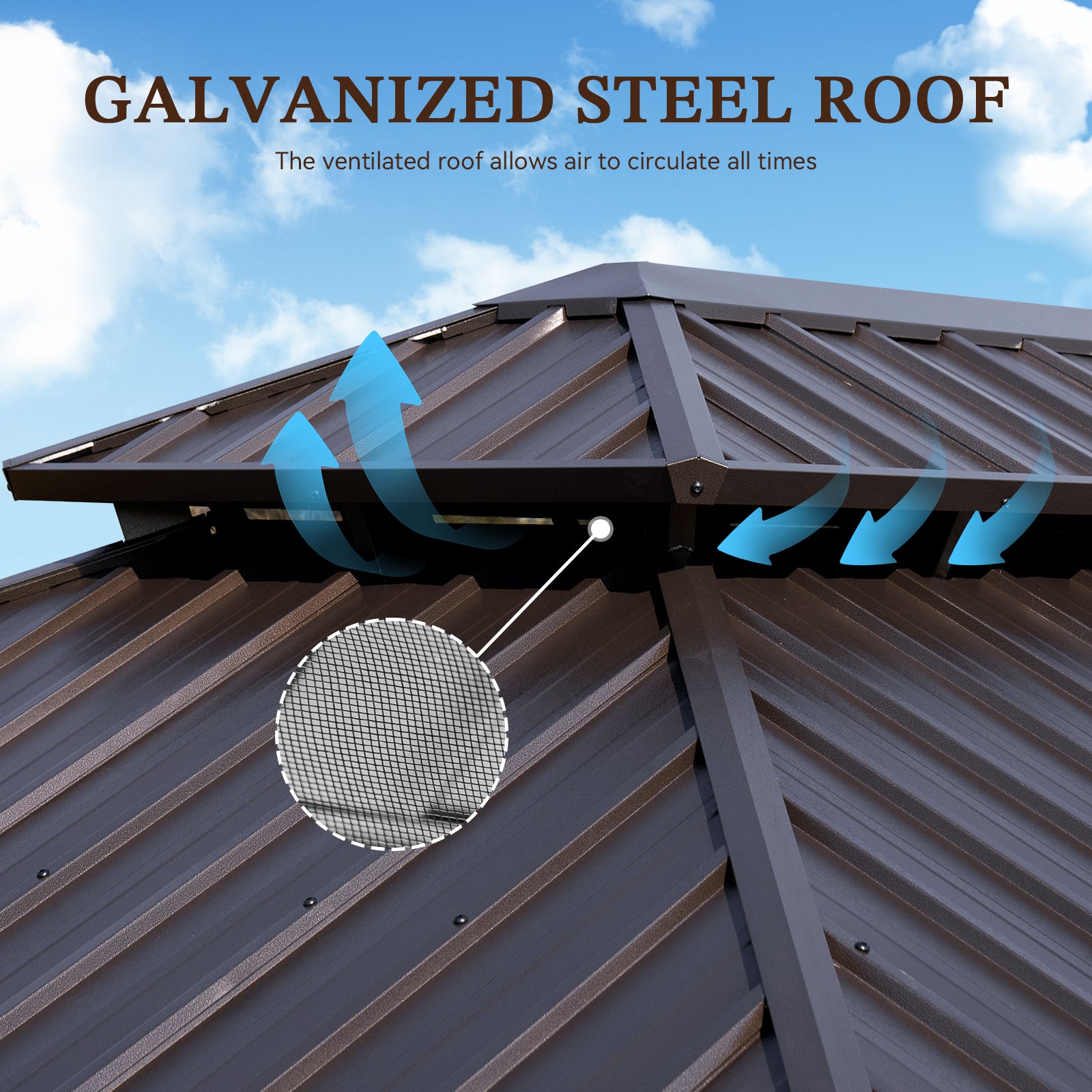 - Galvanized steel dual-layer top: this roof of the hardtop gazebo is made of powder-coated galvanized steel, which is less prone to rust or corrosion. Also, it is durable and sturdy enough to challenge bad weather such as snow and rain.
