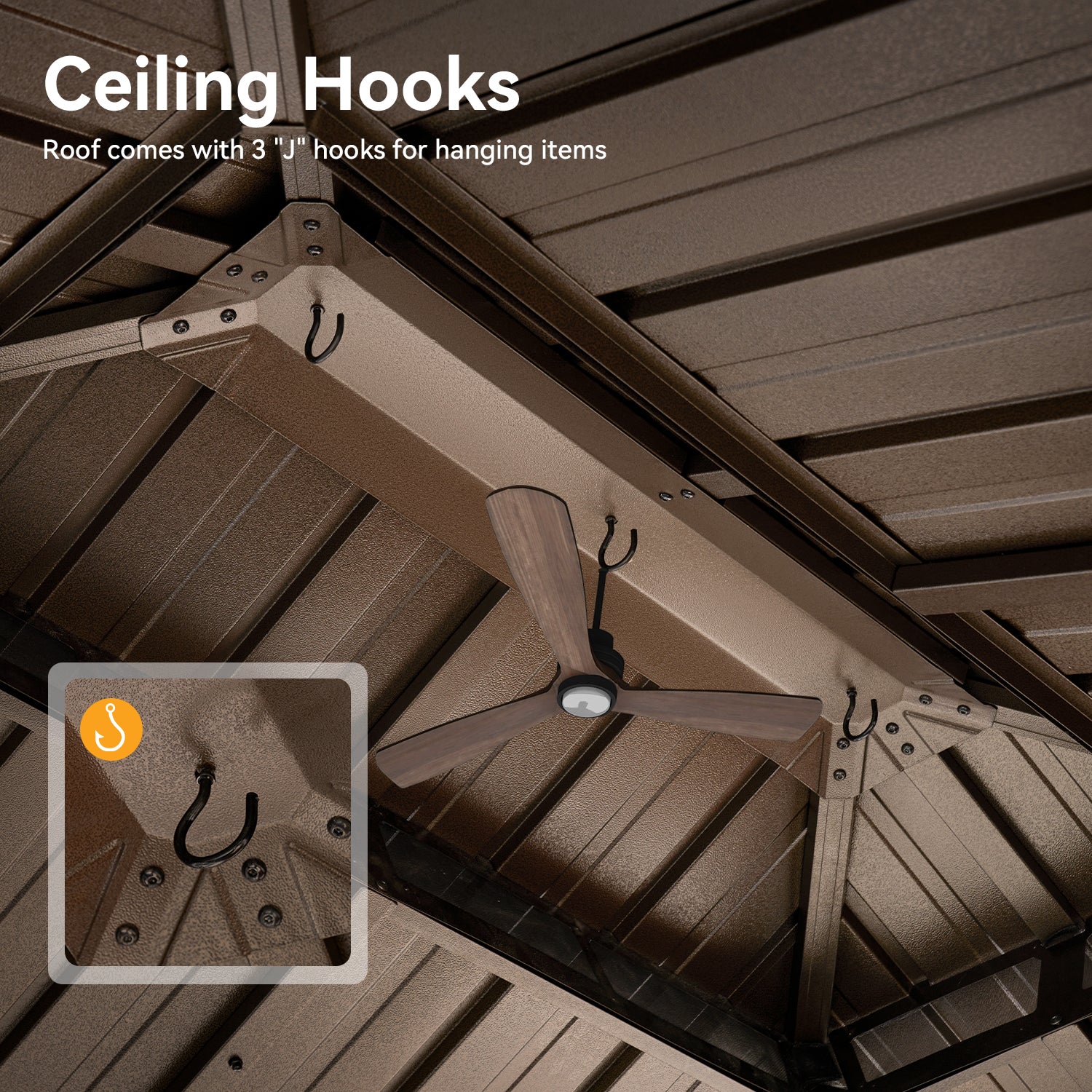 - The top roof is equipped with hooks for hanging lights and fans to enhance your space.