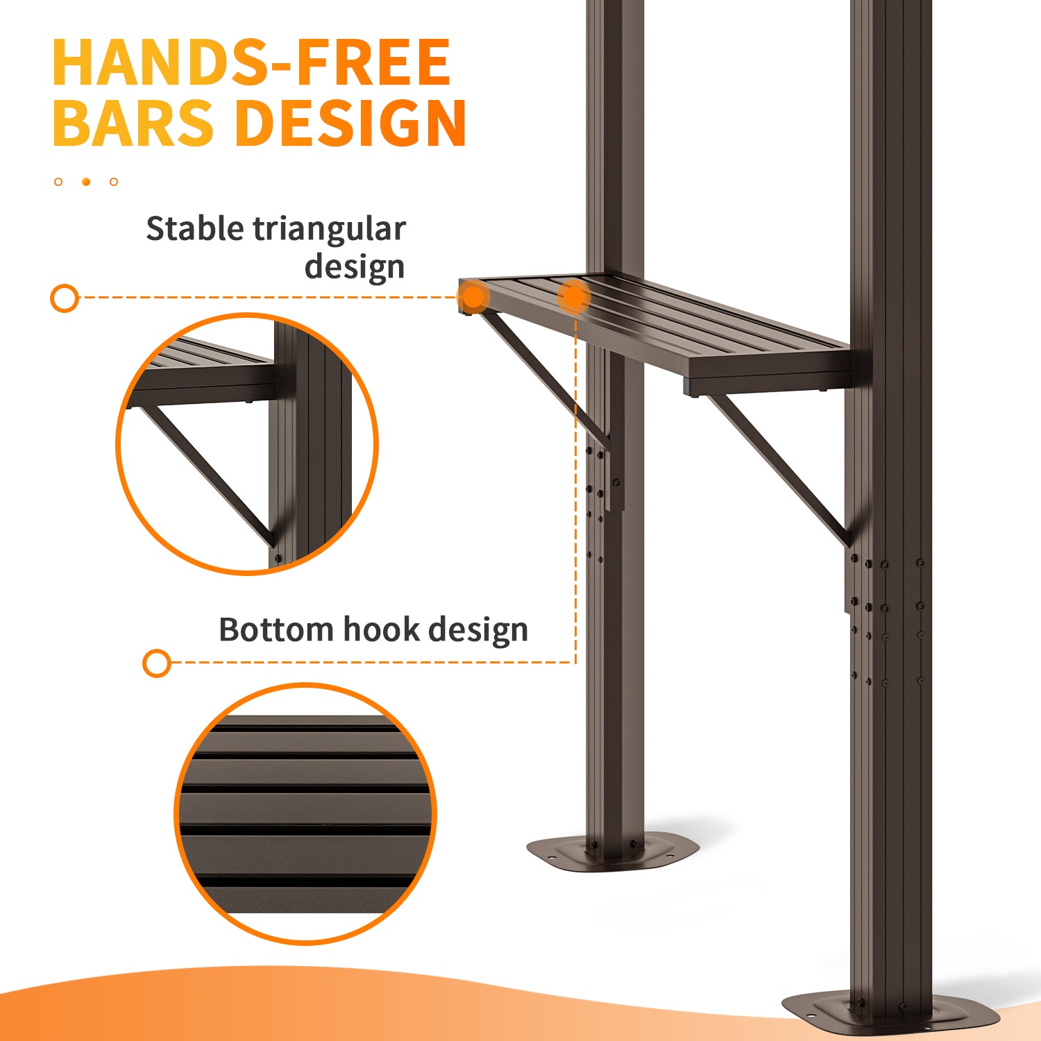 - Convenient Dual Shelves: Equipped with two shelves, this gazebo provides a practical outdoor workstation for placing food, tableware, cutlery, or grilling accessories, ensuring everything you need is within easy reach while you work beneath the canopy frame.