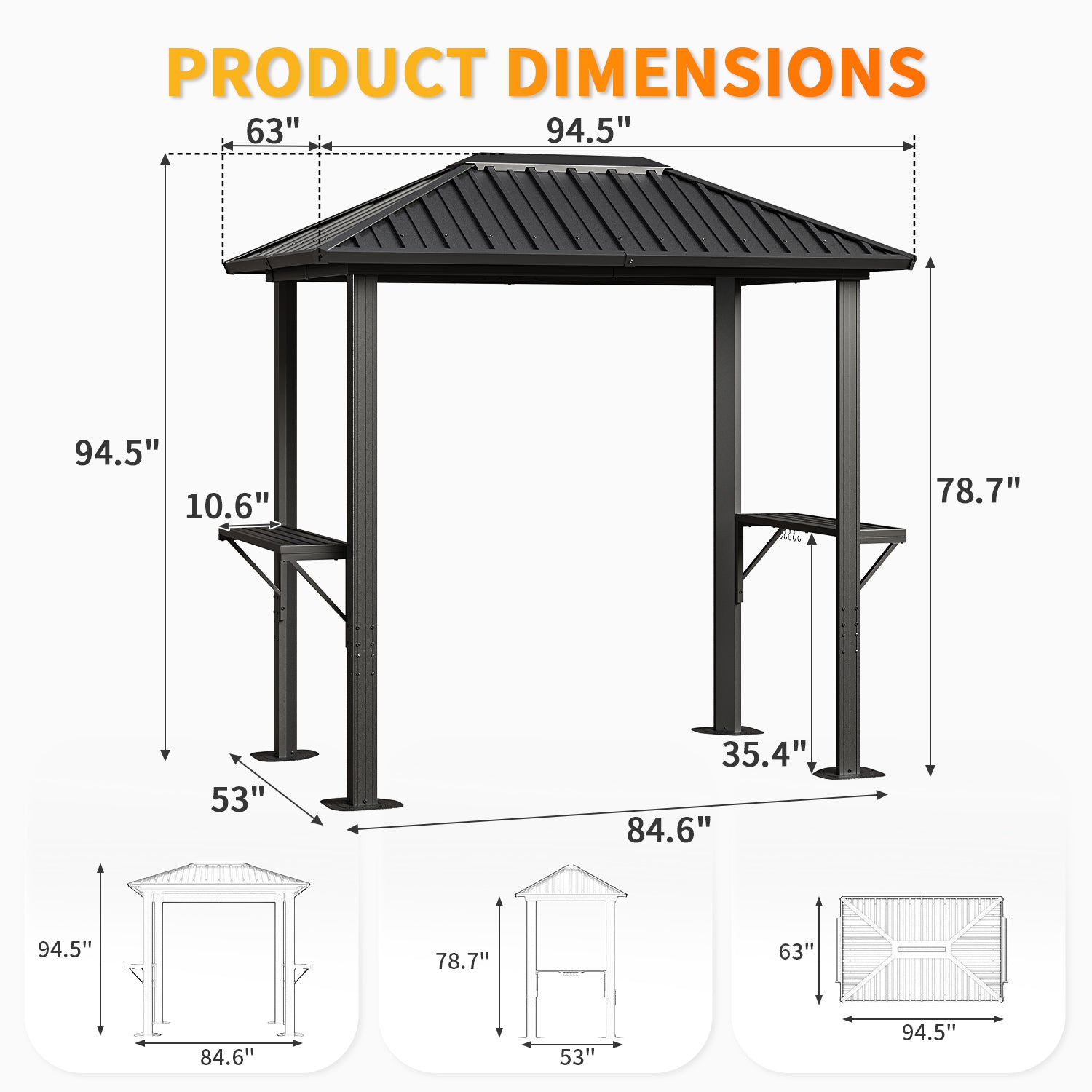 8 Ft. W X 5 Ft. D Metal Patio Gazebo For Bbq
