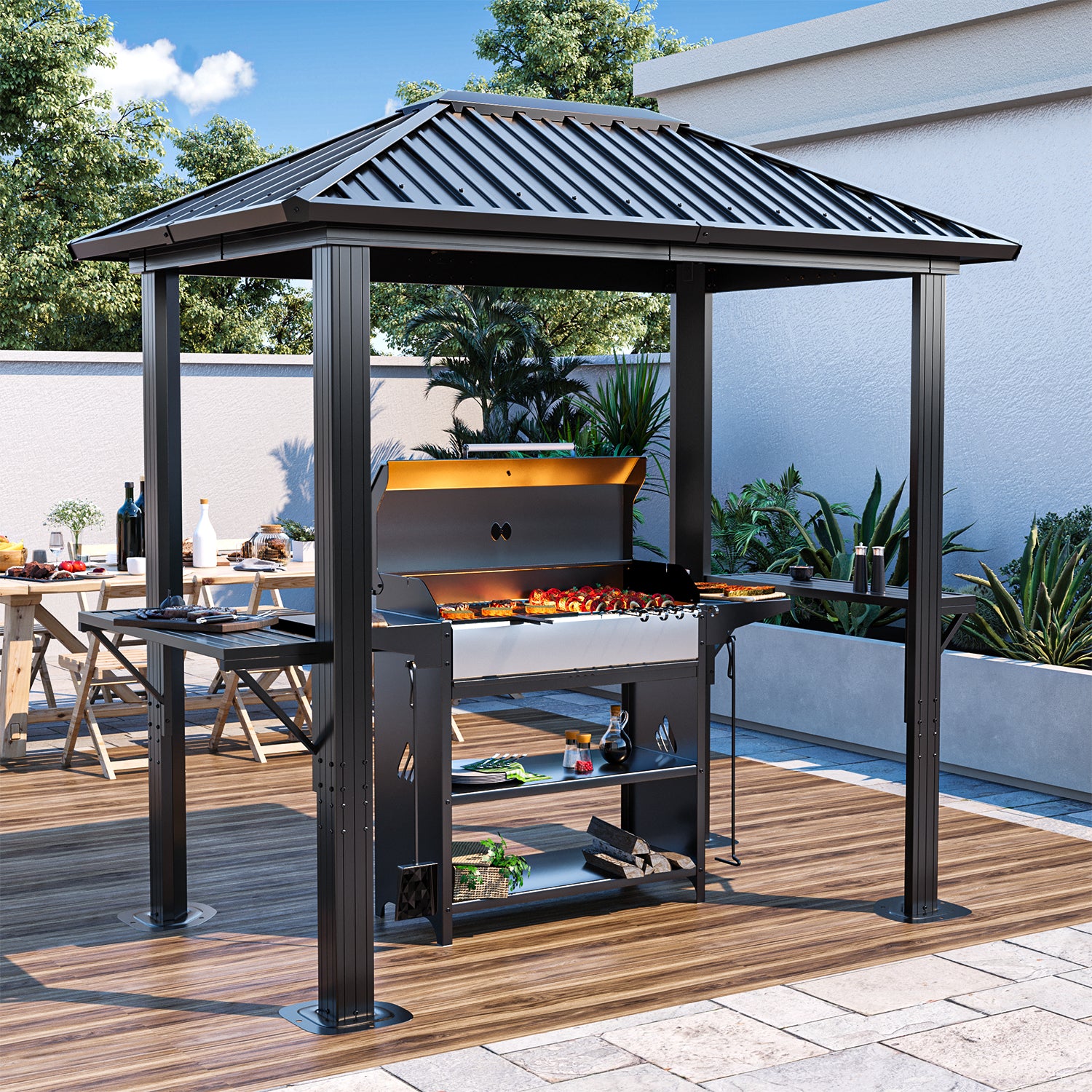 - This BBQ Gazebo is constructed with a solid powder coated aluminum frame, this unique material is durable and resists rust and fading. Protects you from the elements while keeping you ventilated while you grill or work outside.