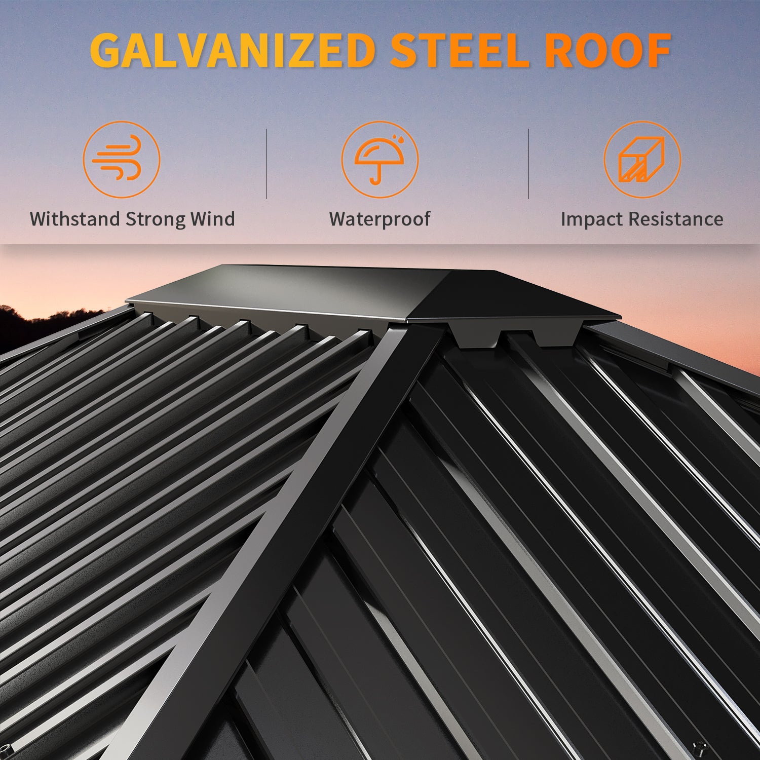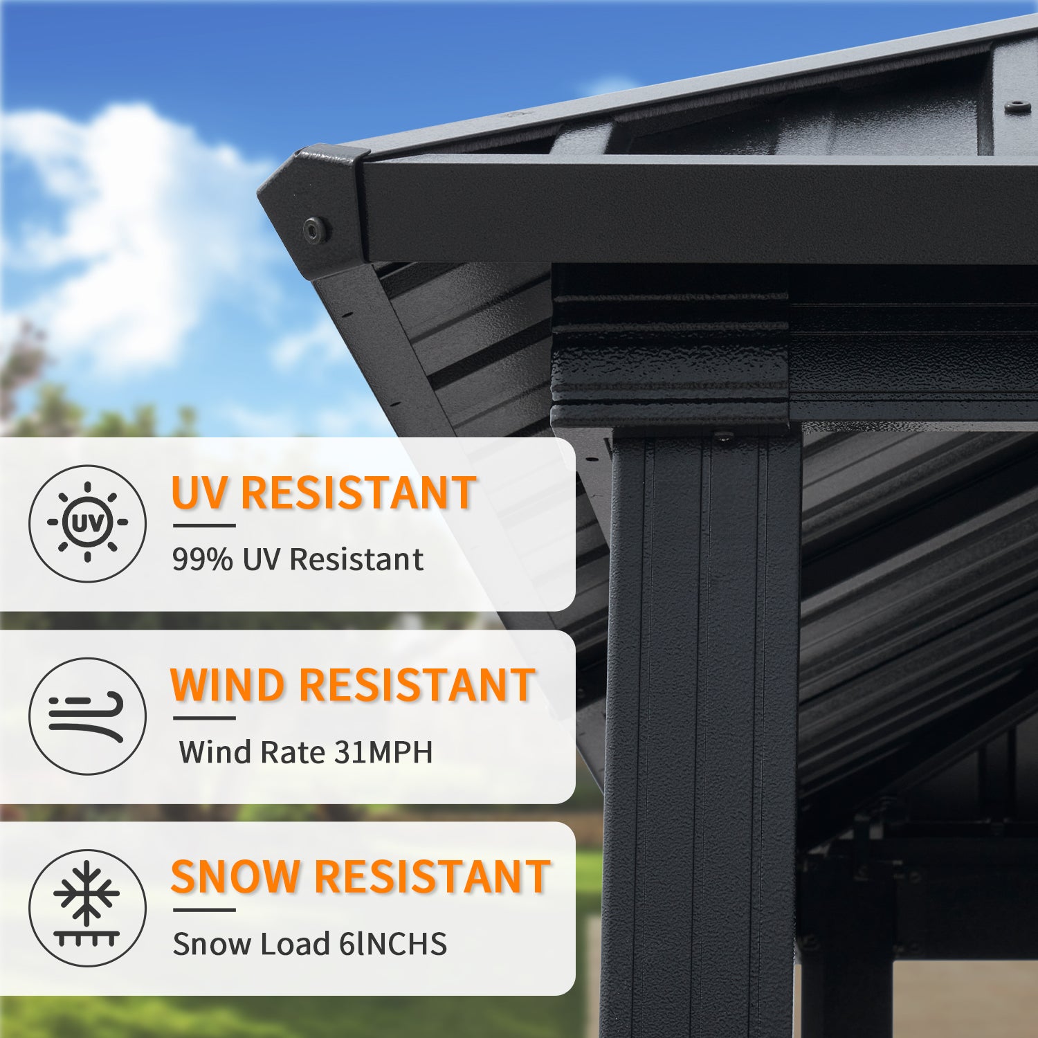 - High-quality aluminum materials are used as panels for the pavilion. The material can block intense light and 99% harmful UV, effectively blocking high temperatures on sunny and rainy days.