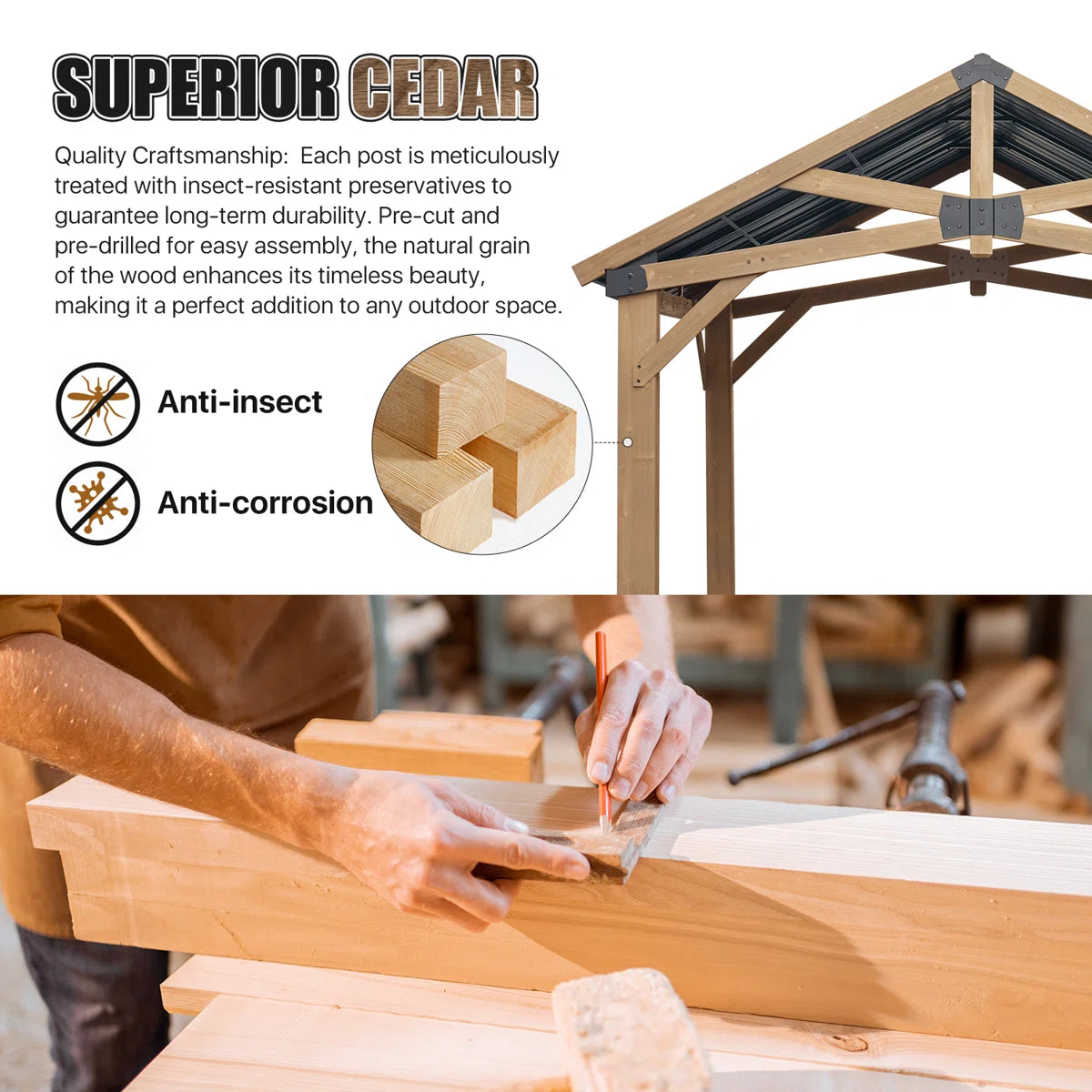 - 【Multiple Sizes & Versatile Use】 Available in various sizes to suit your space, this wood hardtop gazebo offers ample room for outdoor gatherings, dining, or even use as a carport for one or more vehicles.