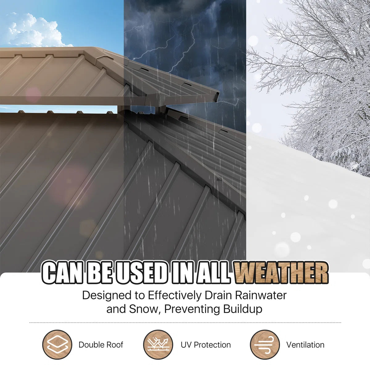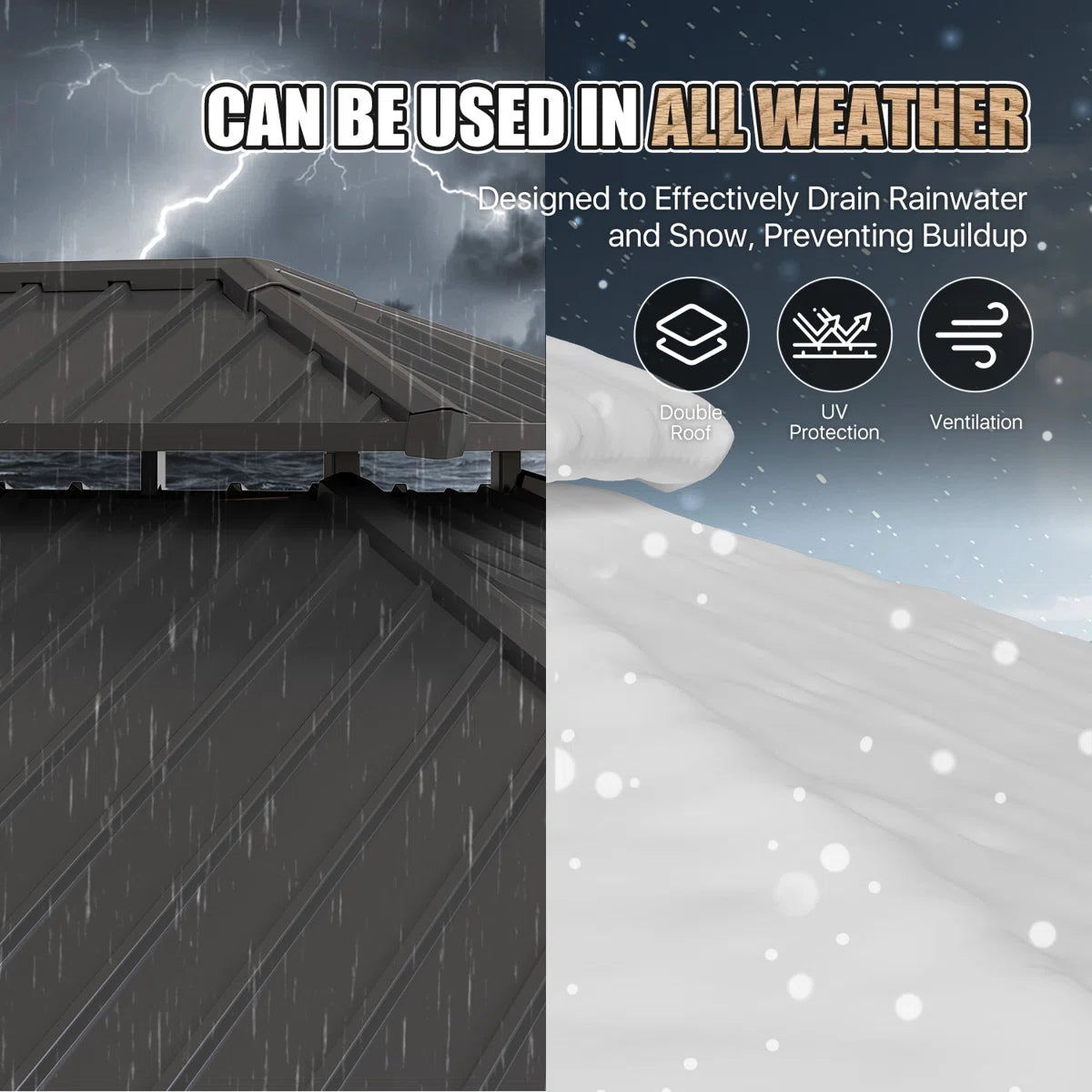 - 【Double Steel Top】Features a galvanized steel roof that is waterproof, rust-resistant, and UV-protected. The double roof design ensures enhanced durability and superior ventilation, keeping the interior cool and comfortable even on the hottest days.